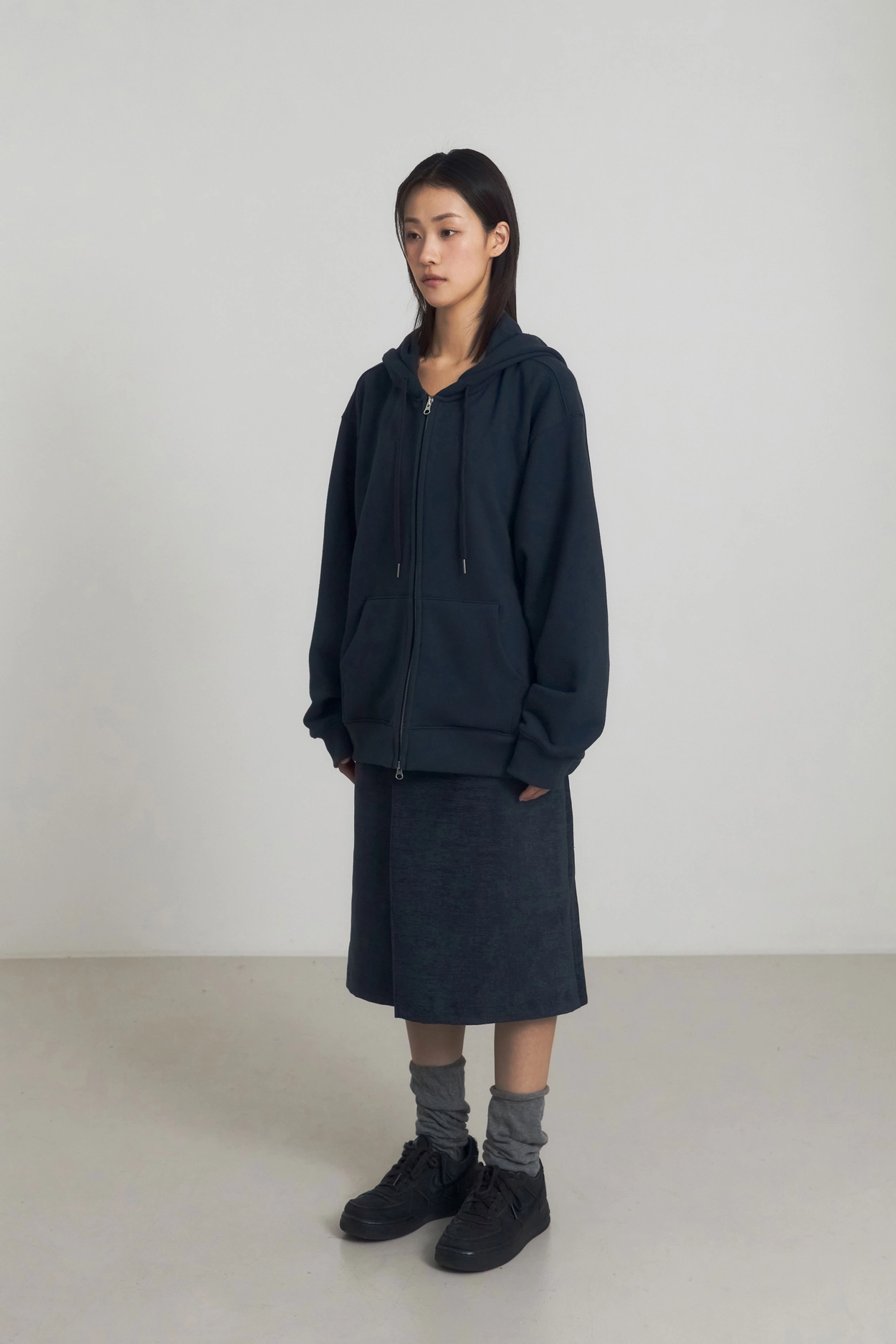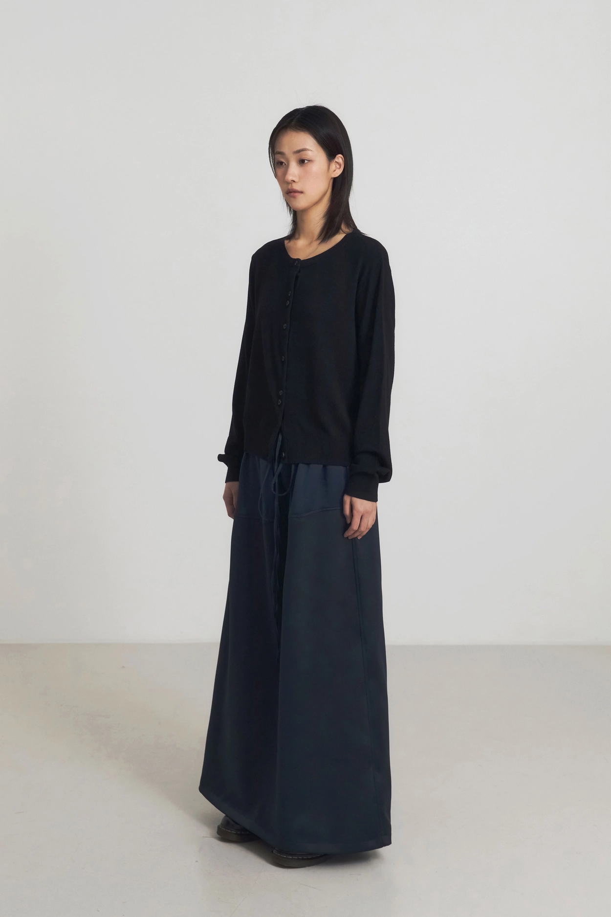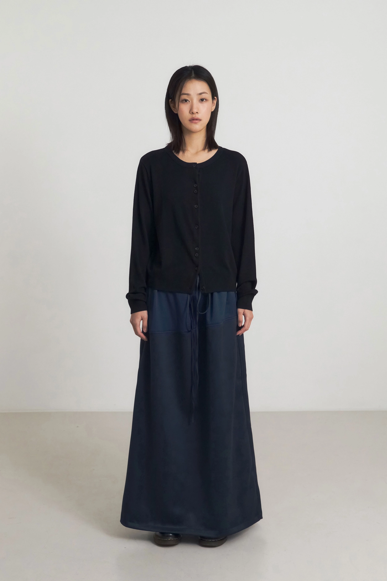 1ST) LINE BANDING LONG SKIRT_NAVY