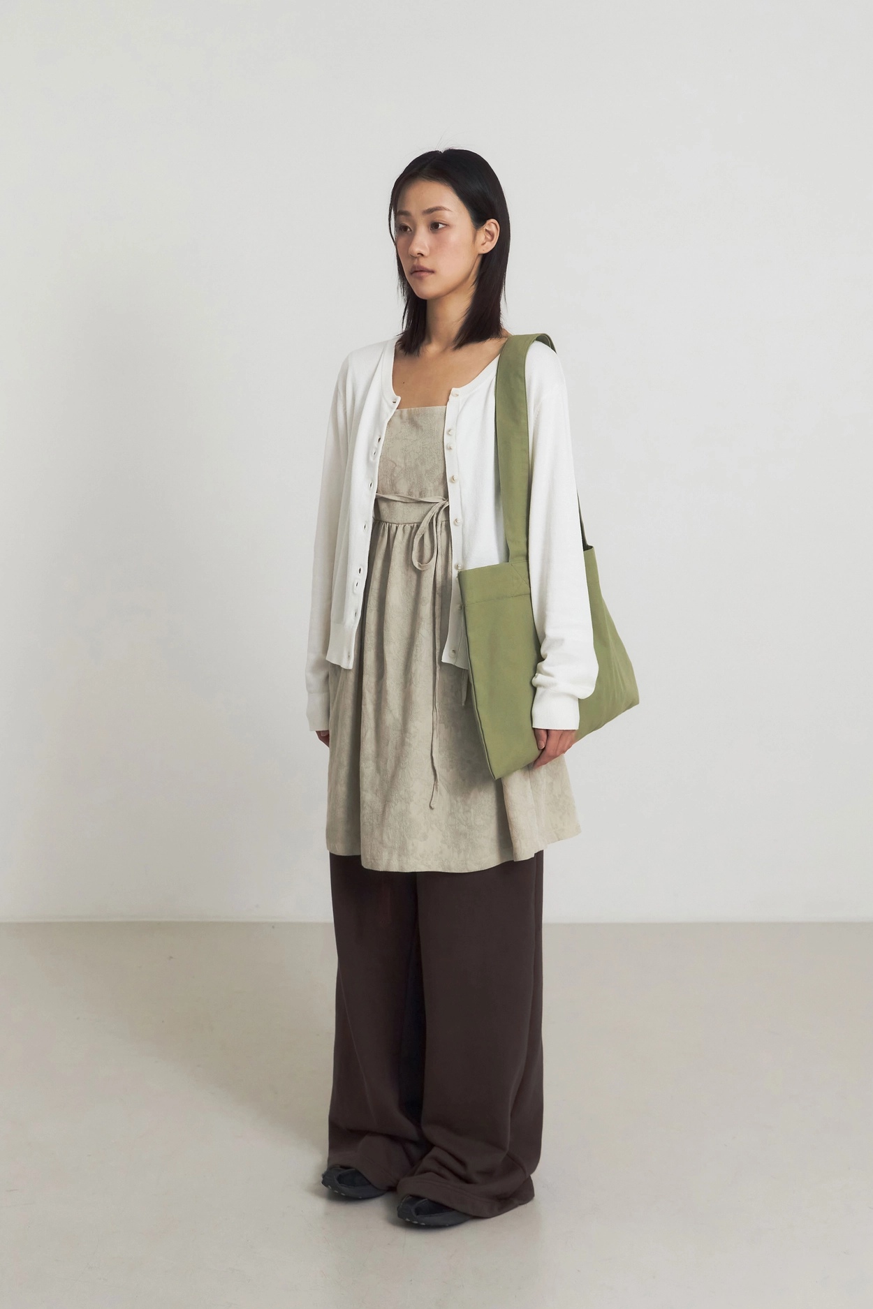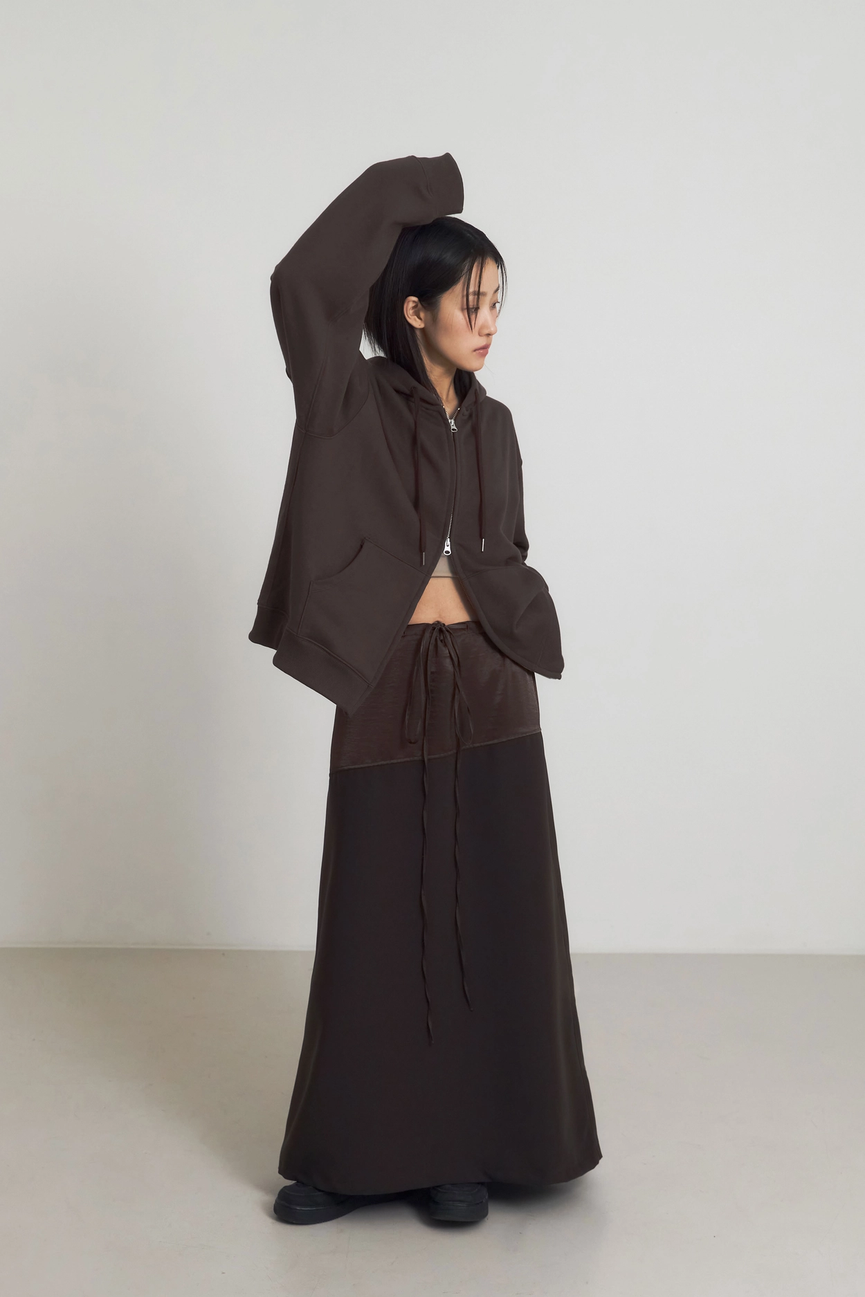 1ST) LINE BANDING LONG SKIRT_BROWN