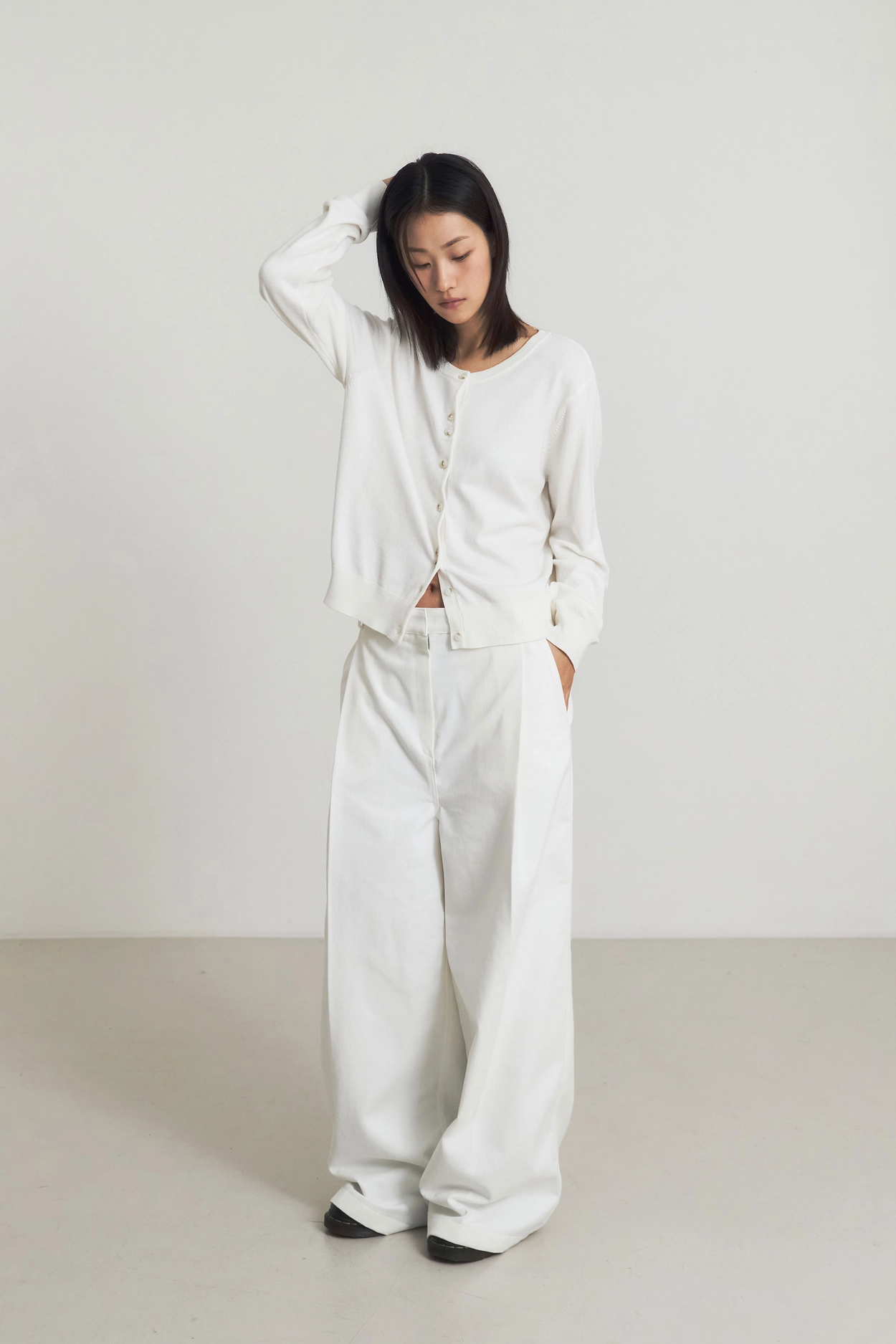 DENIM TUCK WIDE PANTS_WHITE